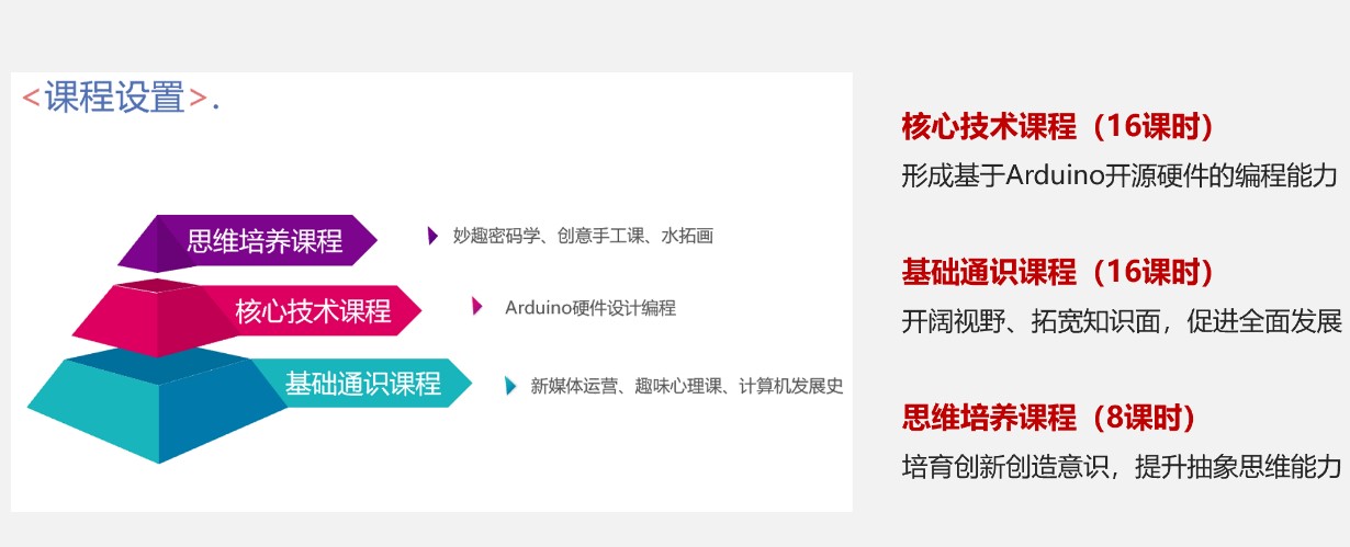 为了避免落入传统公益支教项目“重视学科辅导、忽视思维培养”的窠臼,“科技一夏,编码未来”团队依托公司软件工程、教育学、心理学等优势学科背景,设计了包含基础通识课程、核心技术课程、思维培养课程在内的立体化、全方位创客教育课程体系。该课程体系的实施,有利于帮助当地中小员工形成基础编程能力的同时,更好地开拓视野、拓宽知识面,提升创新意识和创造性思维能力,促进全面发展。