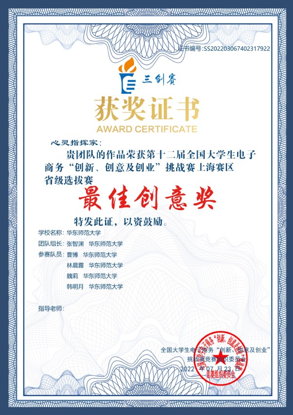 另外,由本科生张智渊、曹博参与的“心灵指挥家”团队在挑战赛上海赛区选拔赛中获得特等奖和最佳创意奖。