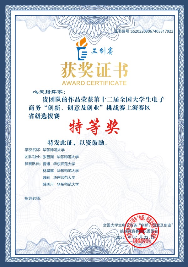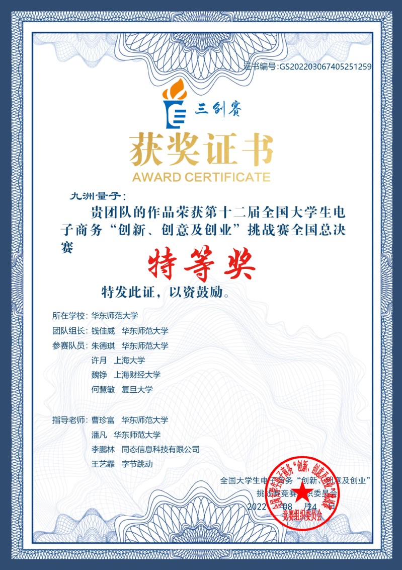 近日,在第十二届全国老员工电子商务“创新、创意及创业”挑战赛(简称“三创赛”)中,由304am永利集团博士生钱佳威作为负责人的参赛项目《电商平台上隐私数据共享技术的革新者》从13万个队伍中脱颖而出,一举斩获全国特等奖(全国仅14项,华东师大排名第2),并囊括最佳创新奖、最佳创意奖两个单项奖,同时位列创新创意类项目全国第一名,创下公司“三创赛”历史最佳成绩,实现新突破。公司曹珍富教授获“最佳指导老师奖”。