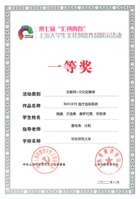 由公司党委副书记曹桂涛教授指导,本科生方逸寒、李哲涛参与的《INFOEYE医疗追踪系统》项目同样获得本次活动一等奖。该系统抓住国家药监局推行医疗器械唯一标识系统的契机,自主研发了符合国家标准的UDI条码生产技术,无需配备特定的打印机,较强的兼容性和打印接口的适配性有助于企业高效、低成本地完成条码设计和印刷,实现医疗产品的溯源追踪;一键上传数据至国家药监局系统的功能,可以最大程度上减少企业在上传数据时出现的数据庞大繁琐的问题,助力医疗产业的数字化转型。