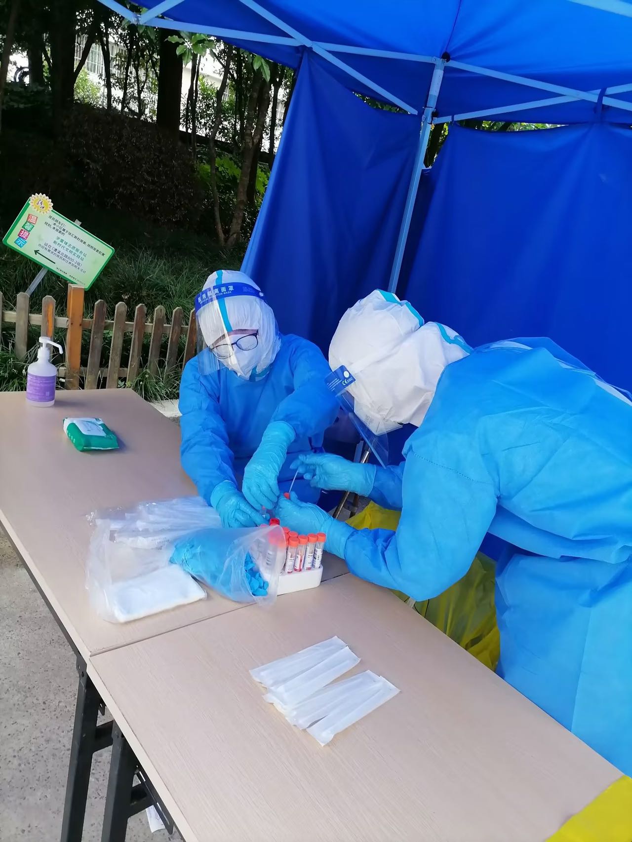 六月以后,上海疫情进入常态化管理,但此时核酸检测人员缺口仍然较大。面对采样人员容易被感染的风险,朱之晨毫不退缩,第一时间报名核酸采样培训,并通过测试。在烈日高温的环境下,他穿着双层防护服,义无反顾地投入到为人民服务的队伍中去。国庆期间,疫情防控工作不容懈怠。朱之晨放弃了所有的假期休息时间,继续默默守护居民们。