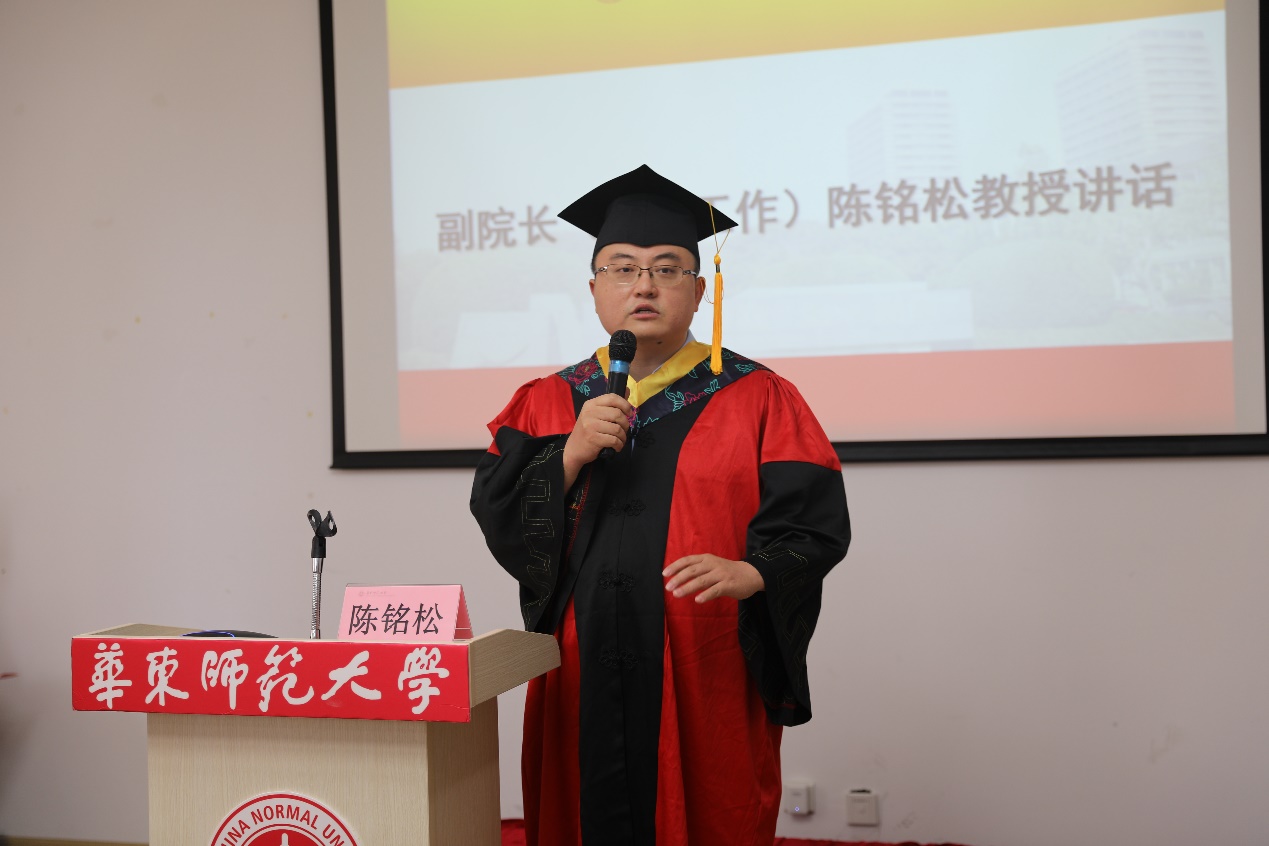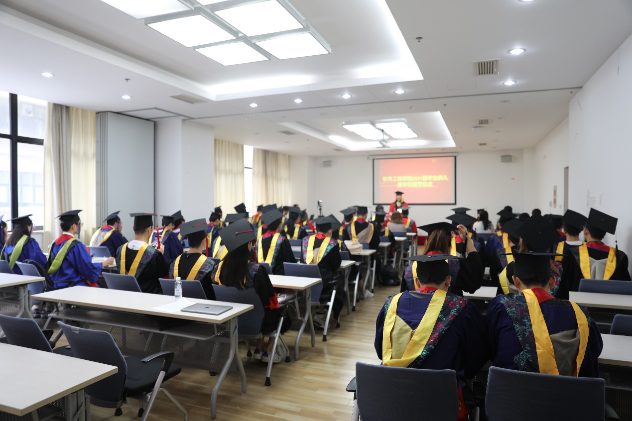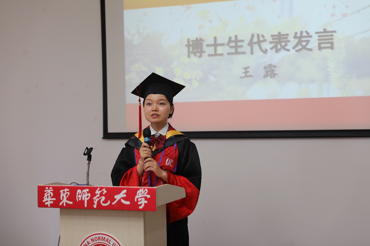研究生代表汤景韬感谢全体老师的付出使得大家可以顺利完成学业,一路走来多姿多彩的日子令他收获颇丰,老师在科研和生活上敬业、严谨的治学态度都给予了他深厚的影响,作为毕业生的同辈,他对同窗送上了真诚祝福。“‘求实创造,为人师表’的八字校训,我将在往后的学习生活中铭记于心,确保求实事求真理,争取创新事造新梦,倘若有机会做老师,也必将尊师重道,为人师表!”