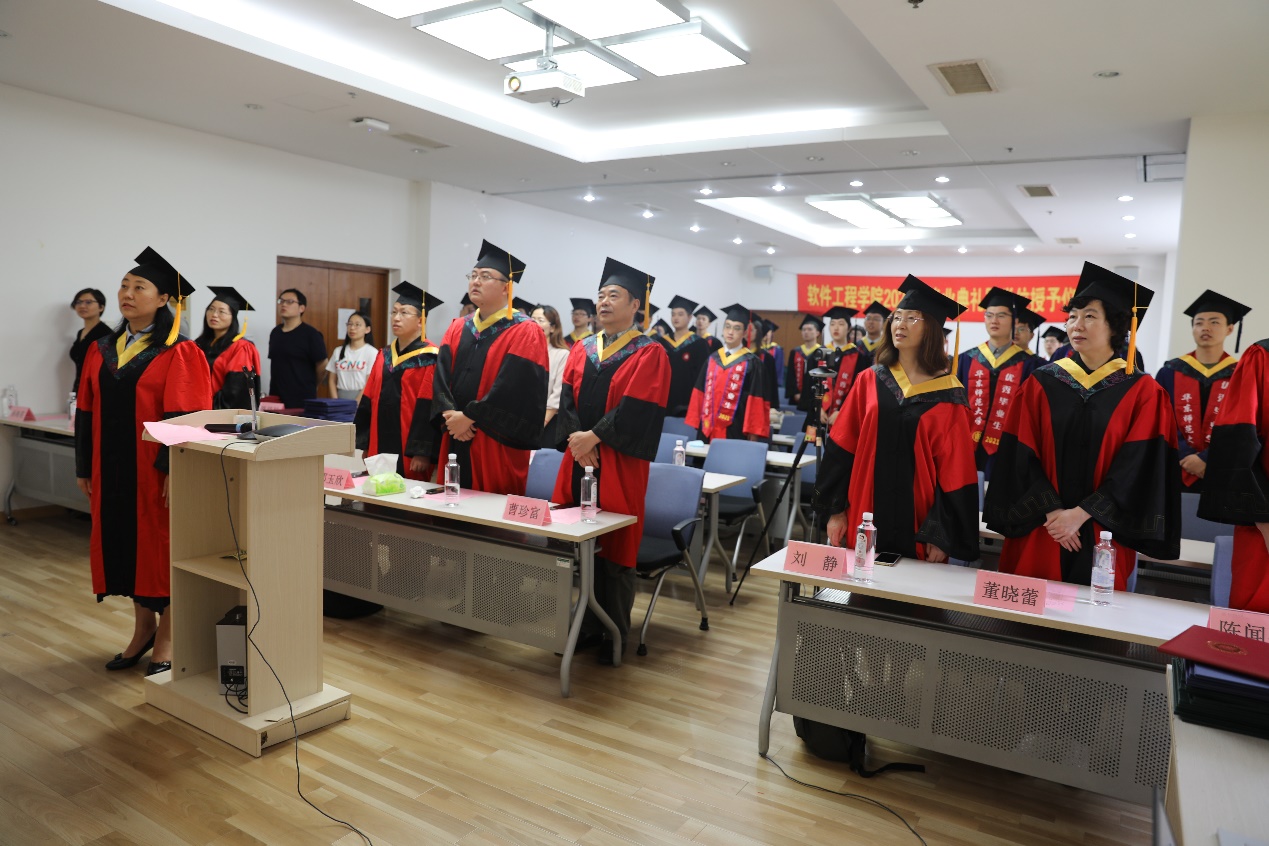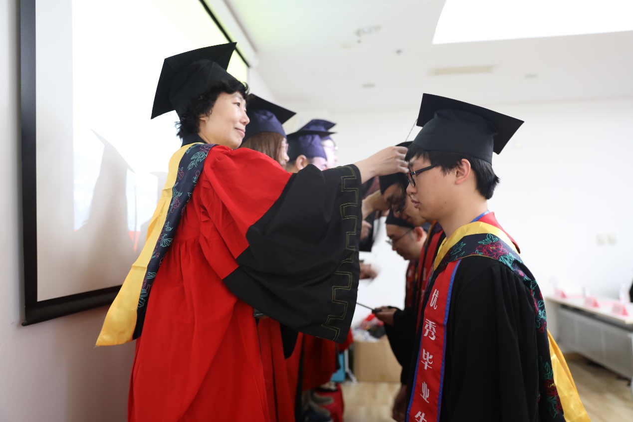 拨穗正冠,寓意麦穗成熟,象征毕业生已学有所成,可以展翅翱翔,学术委员会委员和公司领导为毕业生拨穗并颁发学位证书。