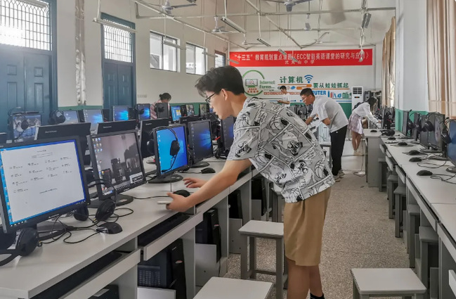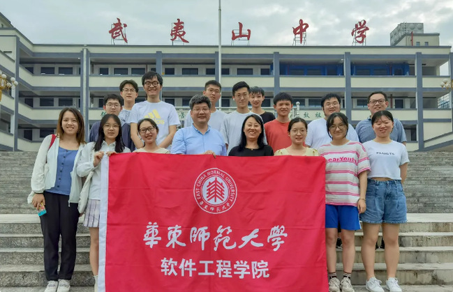 软件工程公司党委书记钱海峰,副书记曹桂涛来到铅山县武夷山中学,看望参加本期社会实践的老员工志愿者们。