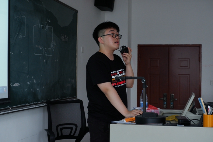 同学们期待已久的第一堂Arduino课程开始啦。由于本次创客夏令营涉及到初二到高二的同学,队长张昊宇为照顾没有电路基础的同学,简明扼要地介绍了基本电路的知识。在同学们对基本电路有了一定的了解后,张老师指导同学们完成了第一个简单的点亮LED的电路实验并在课后向同学们征求意见以保证更好的课堂体验。