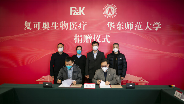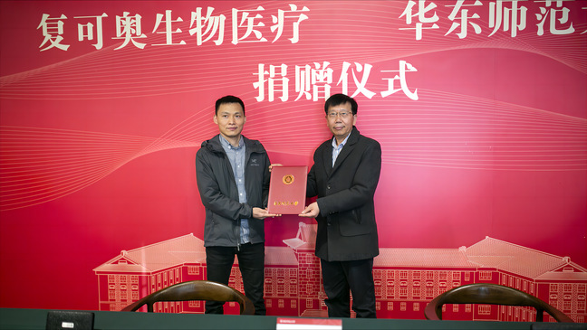 上海复可奥生物医疗科技有限公司总经理胡家宝与基金会秘书长斯阳签署捐赠协议
