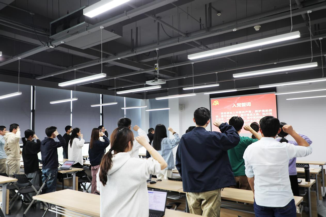 活动最后,全体党员在曹桂涛副书记的带领下集中宣誓,重温入党誓词。