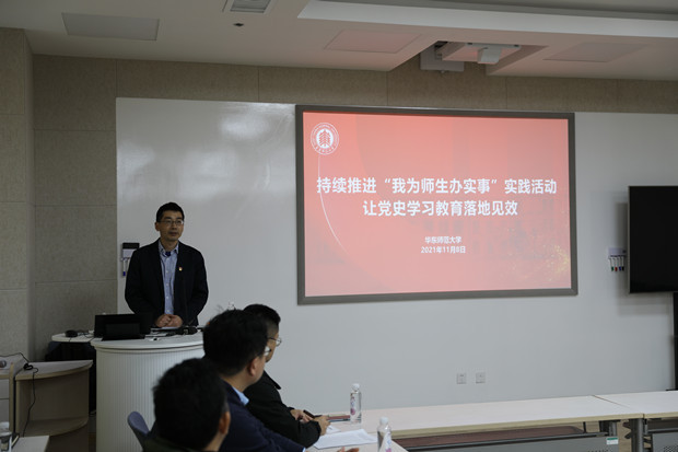 顾红亮介绍了公司推进党史学习教育的阶段性工作与成果。公司全面贯彻落实中共中央印发的《关于在全党开展党史学习教育的通知》,持续推进“我为师生办实事”实践活动,让党史学习教育落地见效。公司对标对表,全面落实“办实事”工作指示精神;走深走实,稳步推进“办实事”取得实绩实效;持续发力,统筹推进党史学习教育第二、三阶段工作。目前,公司共收到各院系报送重点工作129项,其中包括64项发展类实践工作和65项民生类实践工作。