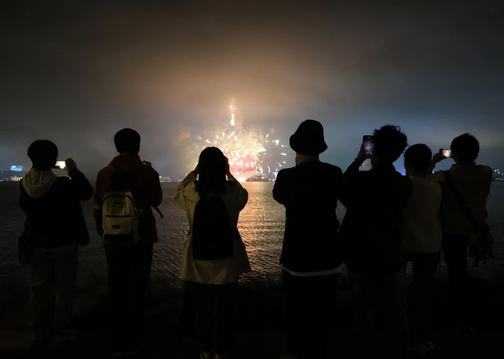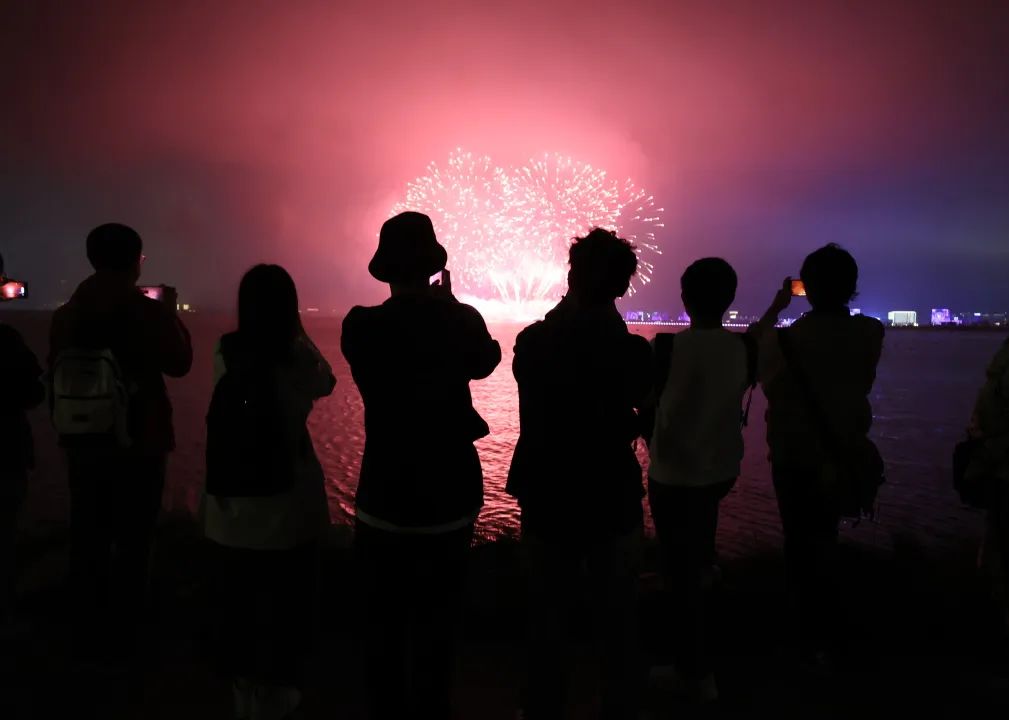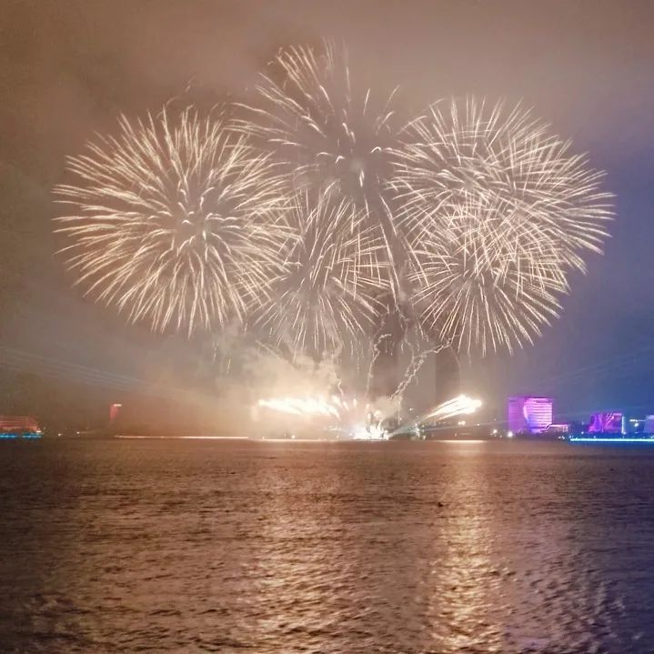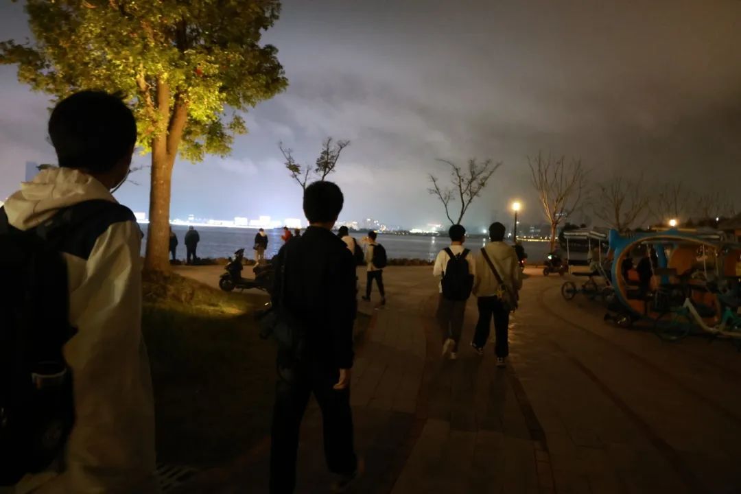 最后,同学们在滴水湖岸观赏了烟花表演,整个滴水湖被用作光影幕布,湖心雕塑“水滴”为核心点,楼宇光影交织,映衬烟花璀璨。同学们在光影的流动中感受到了城市的心跳,感受到临港这座“年轻的城,年轻人的城”的活力。