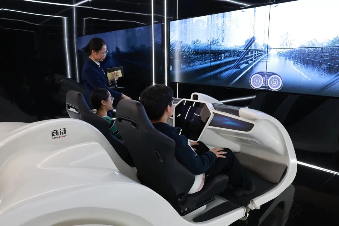 随后,大家又前往了AI创新港,场馆内展示了众多“智能化”的科技产品,让同学们惊叹于当下“黑科技”的力量,也惊叹临港企业充满了“科技感”、“创新力”。模拟驾驶、下棋机器人、OS芯片,都让同学们体验感拉满。