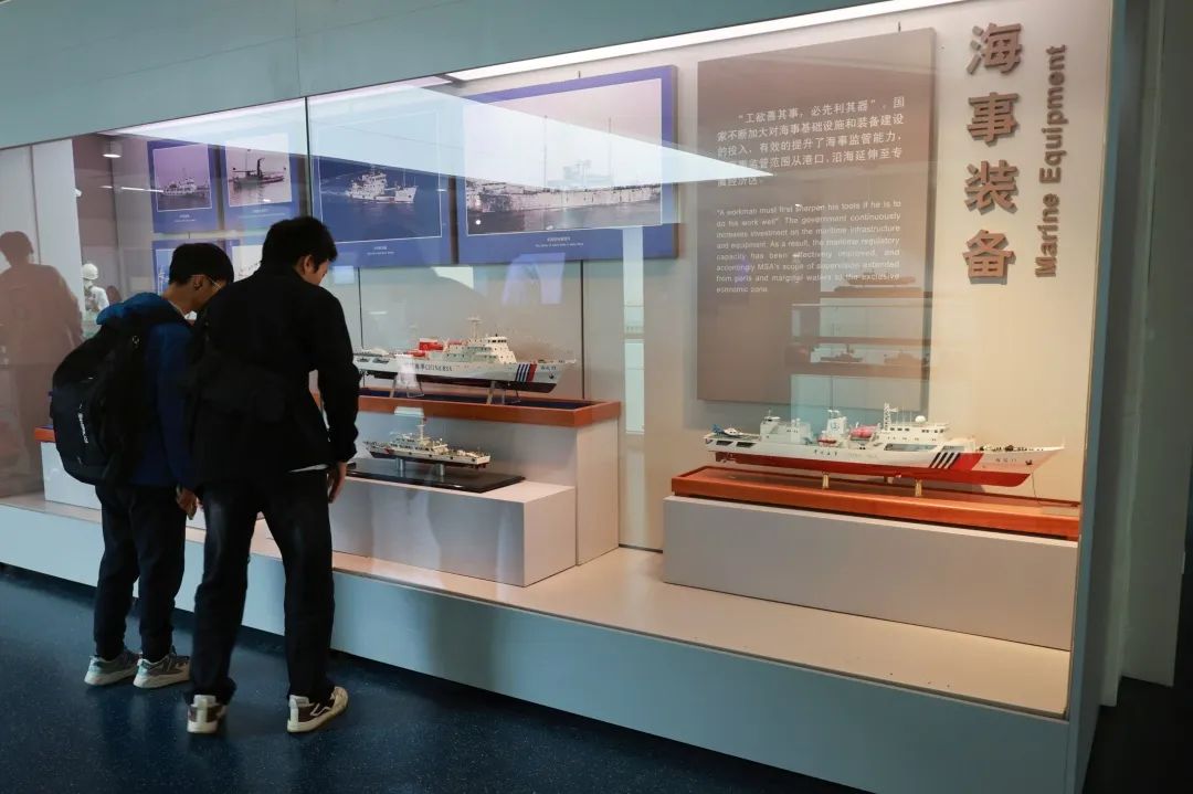 通过参观,大家对航海技术的发展有了新的认识,尤其是现代航海技术的进步,如导航系统、船舶设计等方面,同学们为中国航海的迅速发展感到自豪。