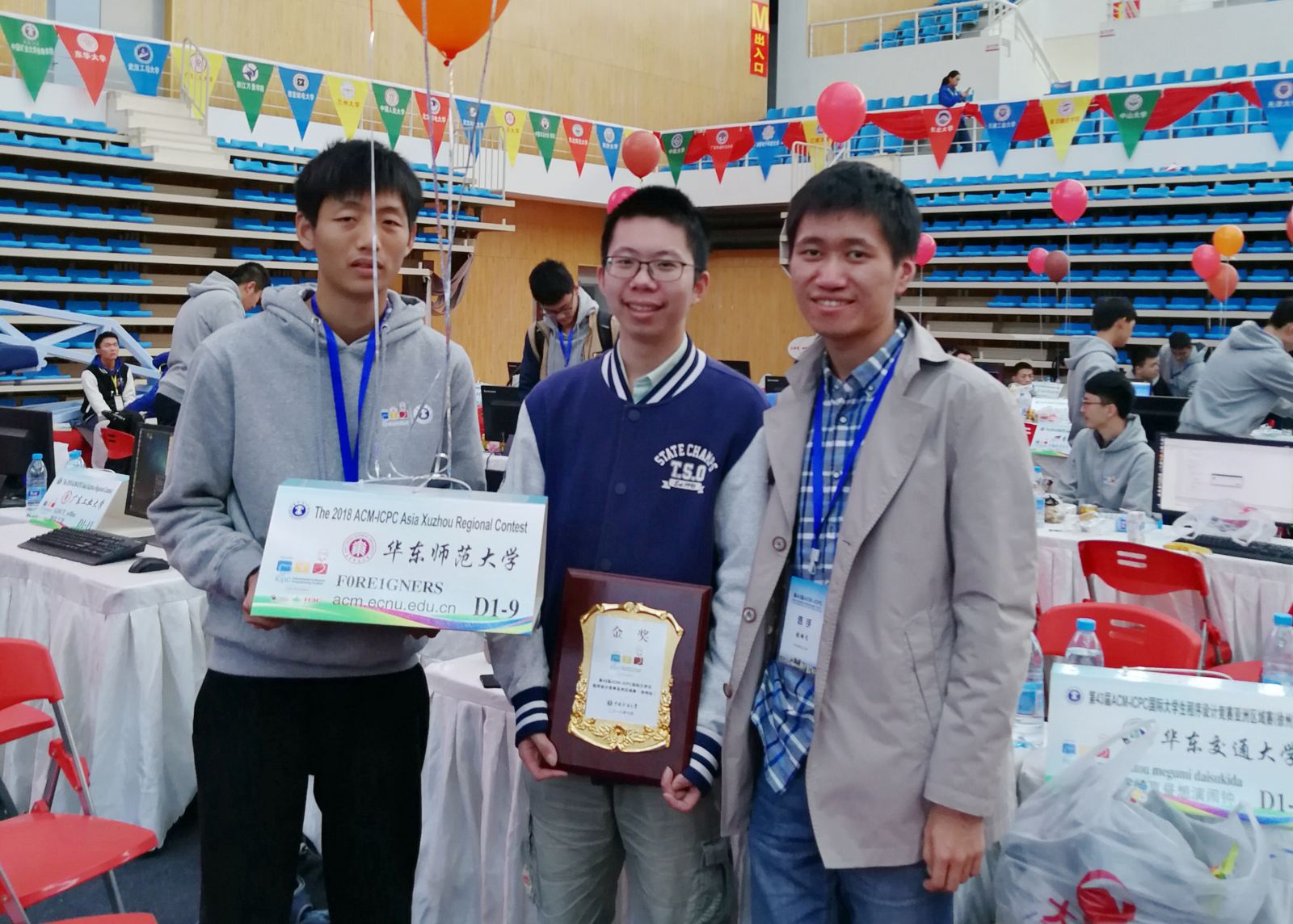 张羽戈、林方欣、周亦然在2018年中国老员工程序设计竞赛(CCPC)秦皇岛赛点获得冠军