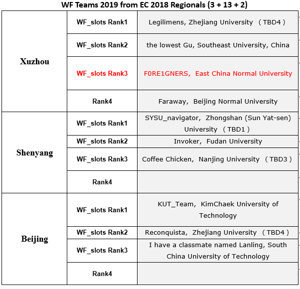 ACM-ICPC亚洲区执行主席公布晋级名单(部分)